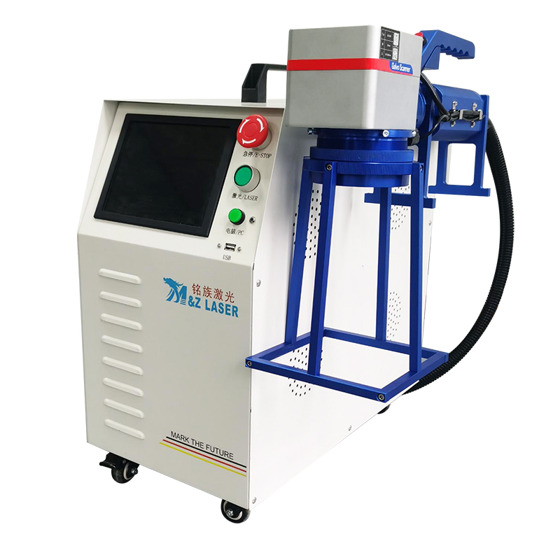 手持式光纖激光打標機:也就是用有拿著光路進行激光加工作用,因為有些工件幅面大、高度過高、體積重、這樣沒法放在工作臺上加工,所以推出了此種激光設備,解決部分客戶需求。手持式激光打標機小巧方便,可以做為普通激光打標機使用,也可以手持激光頭進行作業,手持式激光打標機可對大型機械零部件進行任何方向的激光打標,解決了現有大型零部件激光打標的難題。